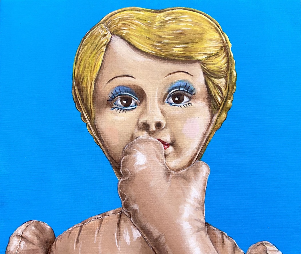 At first glance, Quiet Pretty Things, by Kimberlyn Renee, shimmers with humor, fluorescent color, and the disarming familiarity of an American cultural artifact. Across three acrylic-on-canvas panels, the figure of Judy performs the moral injunctions of “See No Evil, Hear No Evil, Speak No Evil” with exaggerated obedience. The triptych unfolds across three panels—Eye Candy, Selective Hearing, and Lip Service—each structurally aligned with these commands. Rendered in high-voltage pop color and staged as visual theater, the work initially appears playful. Yet beneath that buoyant surface, it unfolds as a precise critique of how visibility, sexuality, and control continue to shape the female body across generations.